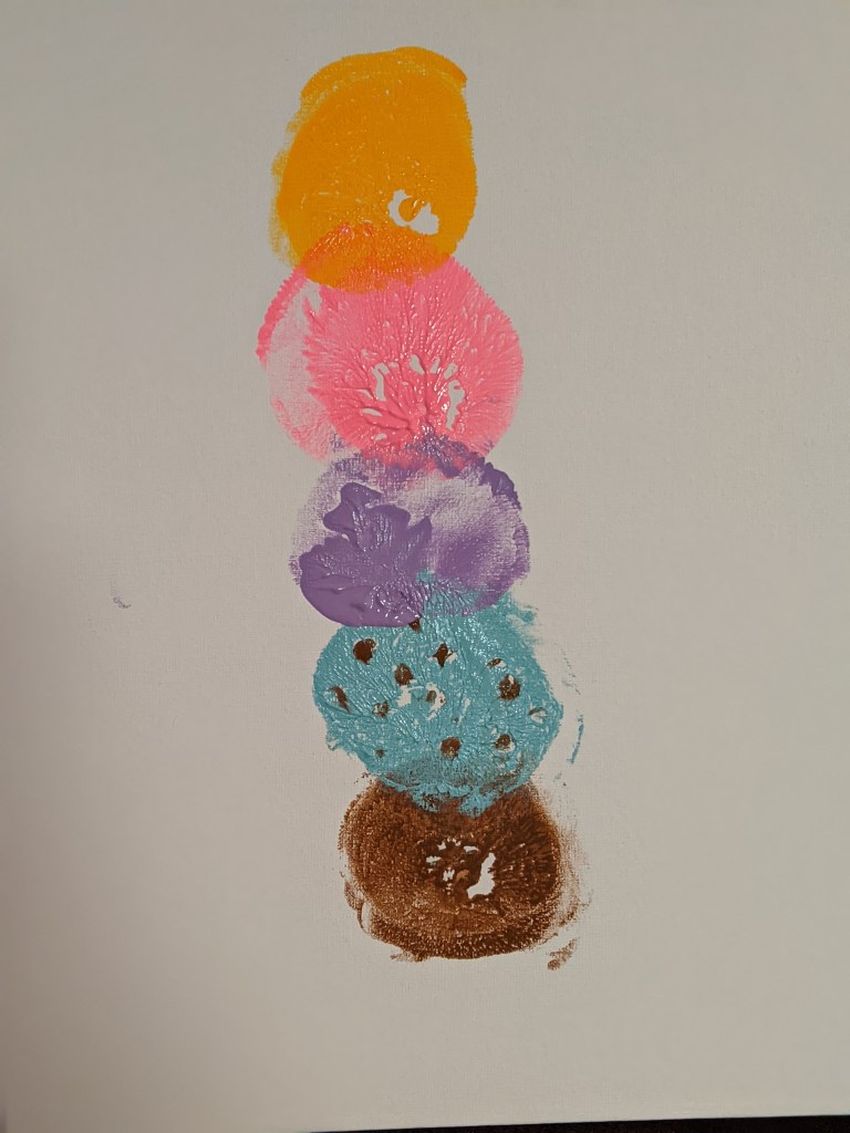 Boobvoyage Celebration Night 1 ~ The night consisted of Boob Art, lots of Prosecco and an abundance of laughs. ~ No Boobs were harmed in the making of this or additional paintings. ~ Our very own talented artist will be completing this print to make it into a full ice cream cone. “Ice Cream is Better with Friends”. And, yes…..5 different boobs are showcased here. ~ Have I mentioned that I have the BEST friends EVER?