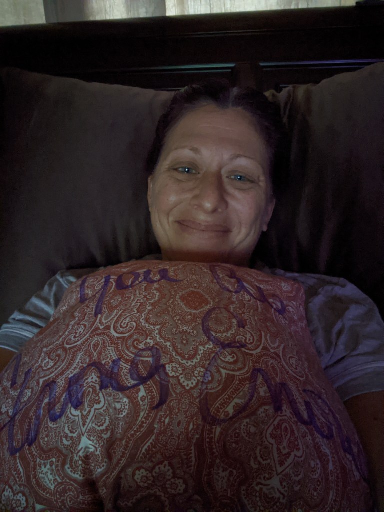 A blessing box has a mastectomy pillow and a drain shirt in it. I sew them and gift to you. If you can send the postage back that helps me continue to send to other sisters. Some send postage – some send more for supplies- some can’t send any. I don’t keep track. Jesus always makes sure I have enough to go around.