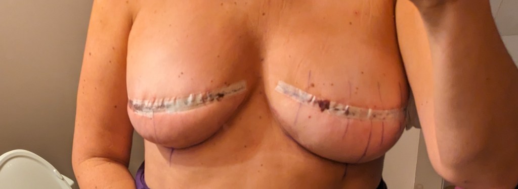 Why am I bringing this up? Well, because it plagues me every single day as I struggle with my own self-image. I am NOT happy with my breasts, nor do I love or give the rest of my body the love or credit it has earned. In my head, I am often an overweight, less than average 50-year-old woman with Frankensteinesque boobs, and don’t get me started on the ups and downs of anxiety or effects of Menopause. That can all be saved for another time.